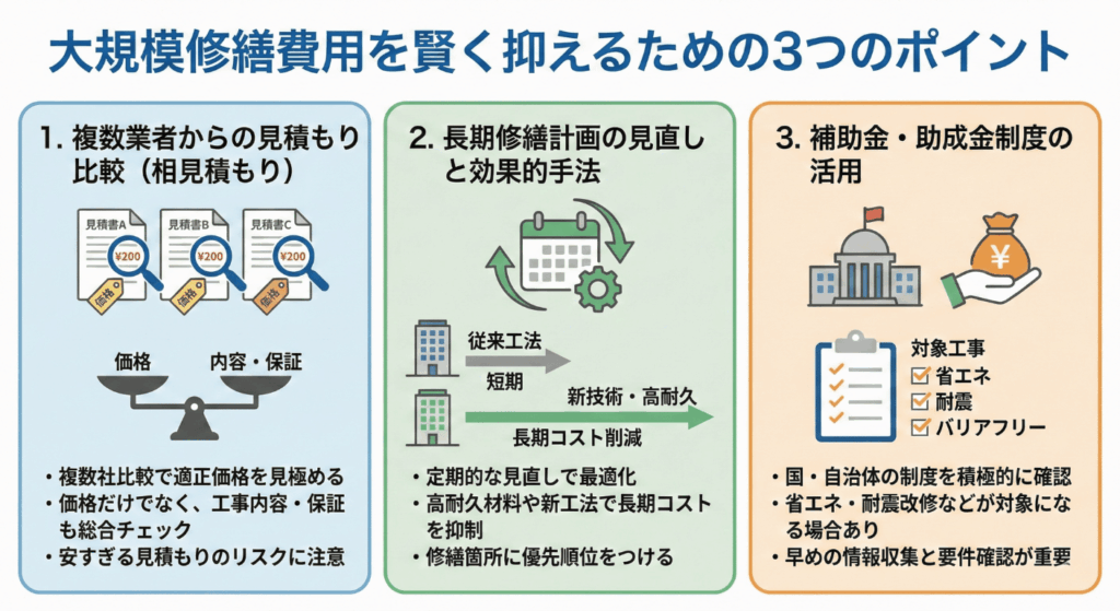 大規模修繕費用を抑えるためのポイント